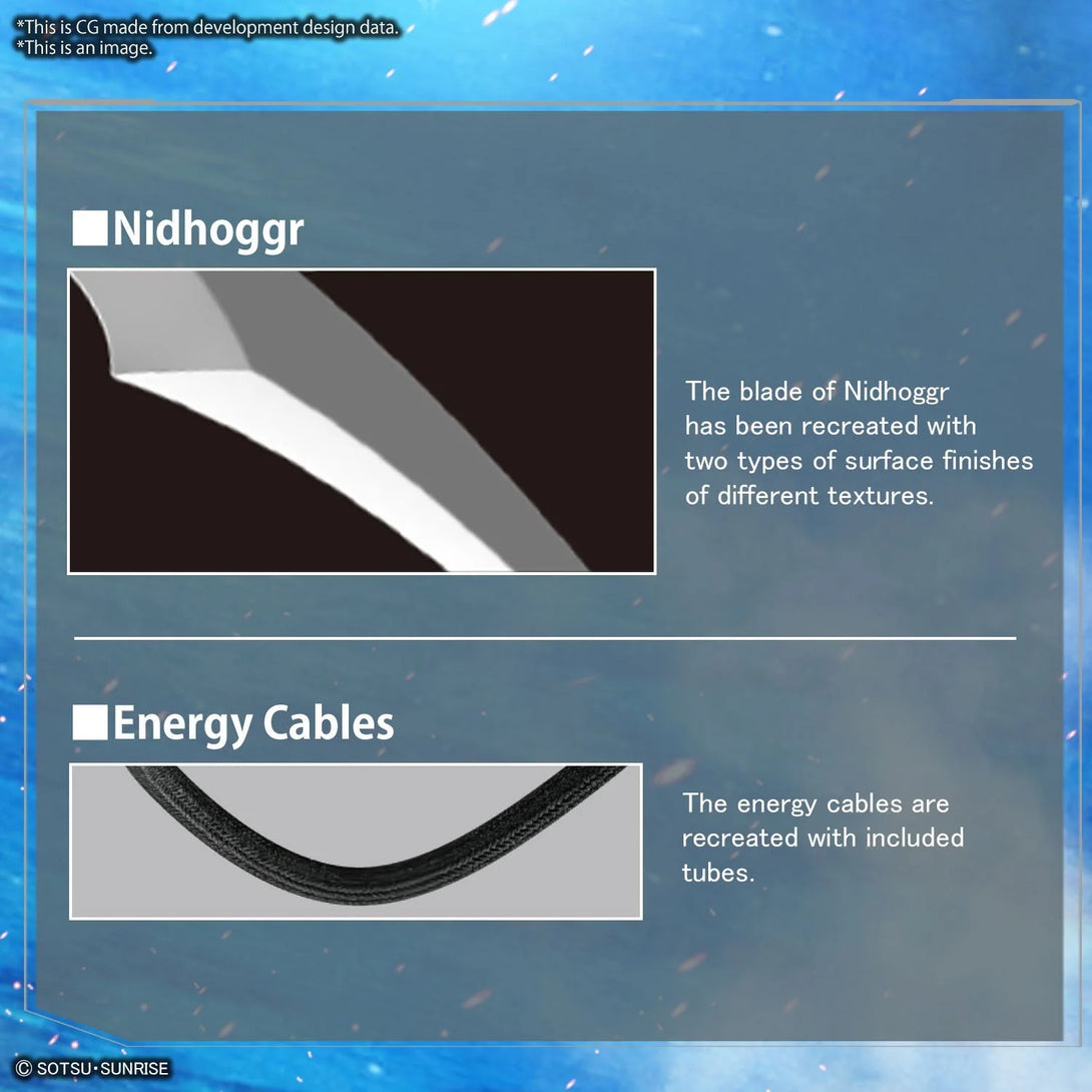 The place parts of the Jufunshuren "Nidhoggr" have two types of surface finish to express the difference in texture; the energy cable connected to the backpack is reproduced with the attached varnish tube.
